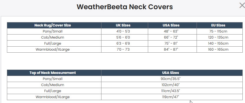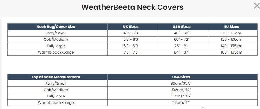 Can you please tell me more about the sizing for the neck covers (Weatherbeeta navy/burgundy 0gm lite neck cover? Weatherbeeta ComFiTec Essential 0g Lite Standard Neck Cover Only